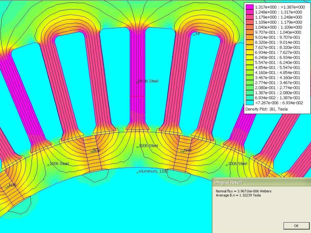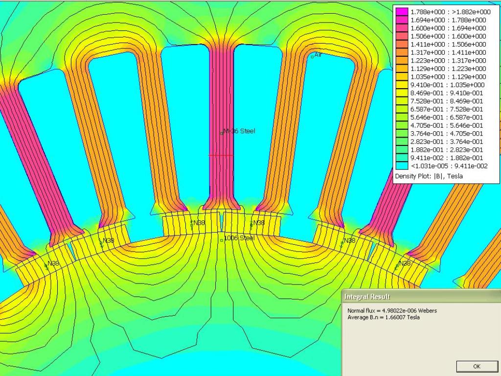 Zrobiłem trzy analizy z „użyciem” magnesów N38 o przekroju 7mm x 2,4 mm. dla średnicy stojana 98mm i średnicy wirnika 97,2mm, stojan 48 żłobków, 16 biegunów na wirniku.