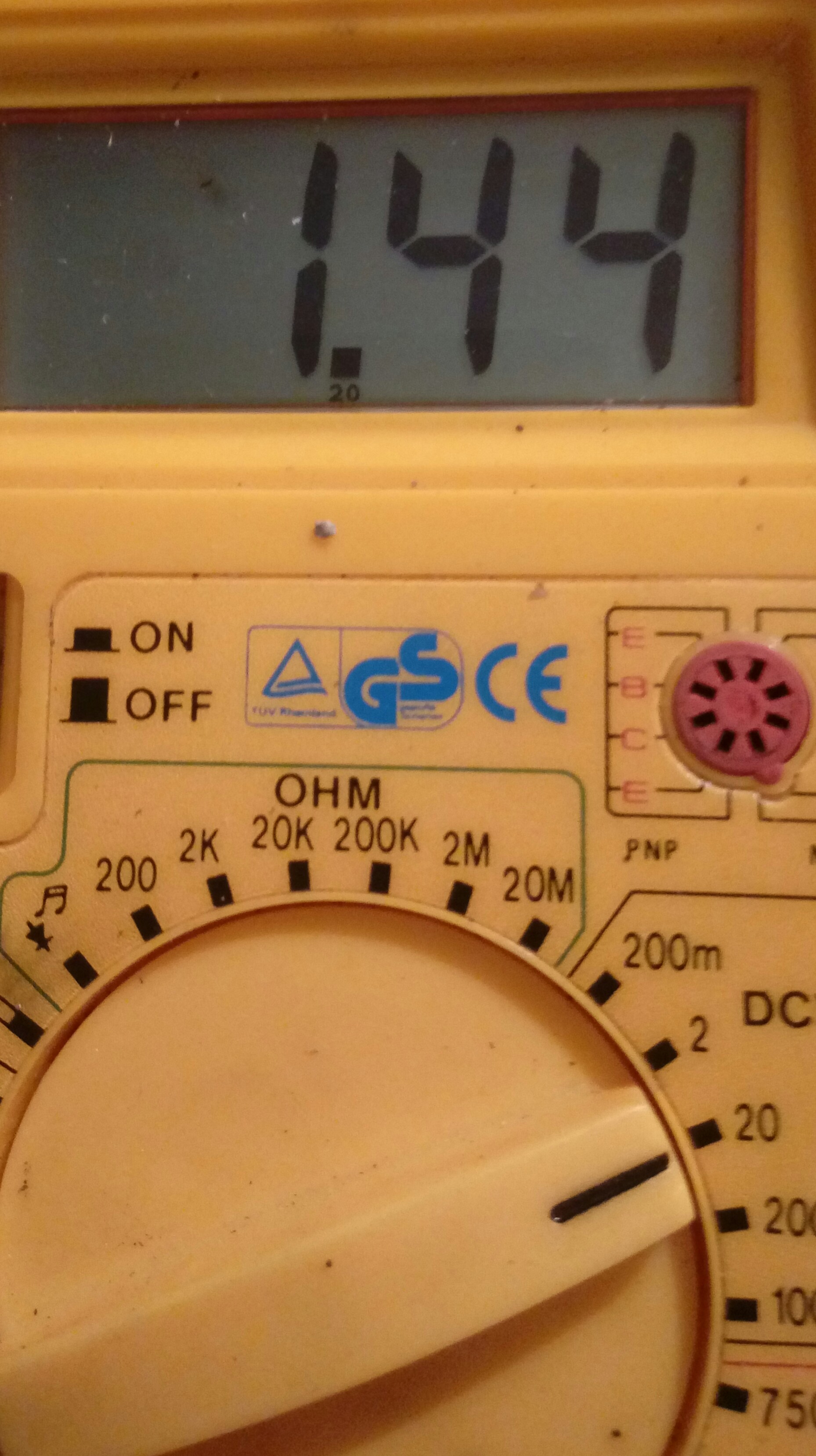 Napięcie jakie uzyskałem to 1.45V. Przy 108 zwojach