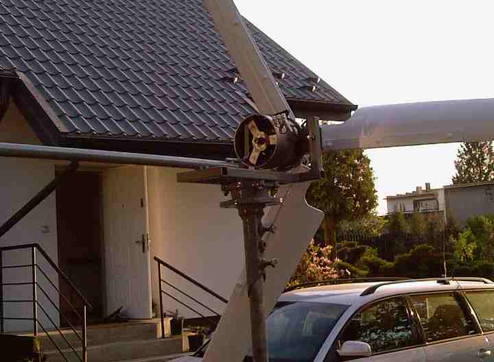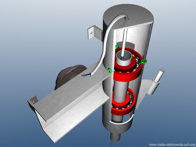 U mnie oś głowicy,to i oś prądnicy.Teraz się zastanawiam nad piastą obrotu wiatraka,jeśli przez oś ma przechodzić kabel,to trzeba będzie wiercić przez oś.W sumie to mnie to nie martwi bo się da,martwi mnie ścianka osi która po wywierceniu będzie cienka.Oś od mojego auta to 25mm,na kabel 3x4 kwadrat trzeba będzie otworu 12mm,zostanie po 6.5mm ścianki z każdej strony.To nie wiele,bo tam są największe siły a do ziemi będzie daleko.Gorsza sprawa że całość będzie na dachu,powyżej kalenicy.