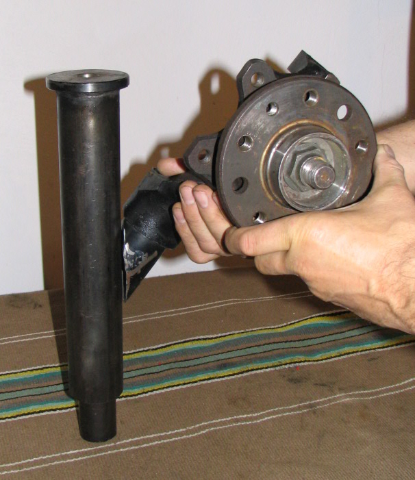Na zdjęciu poniżej widać kolumnę z blaszaną płytką (gr. 5mm) przykręconą z tyłu piasty.