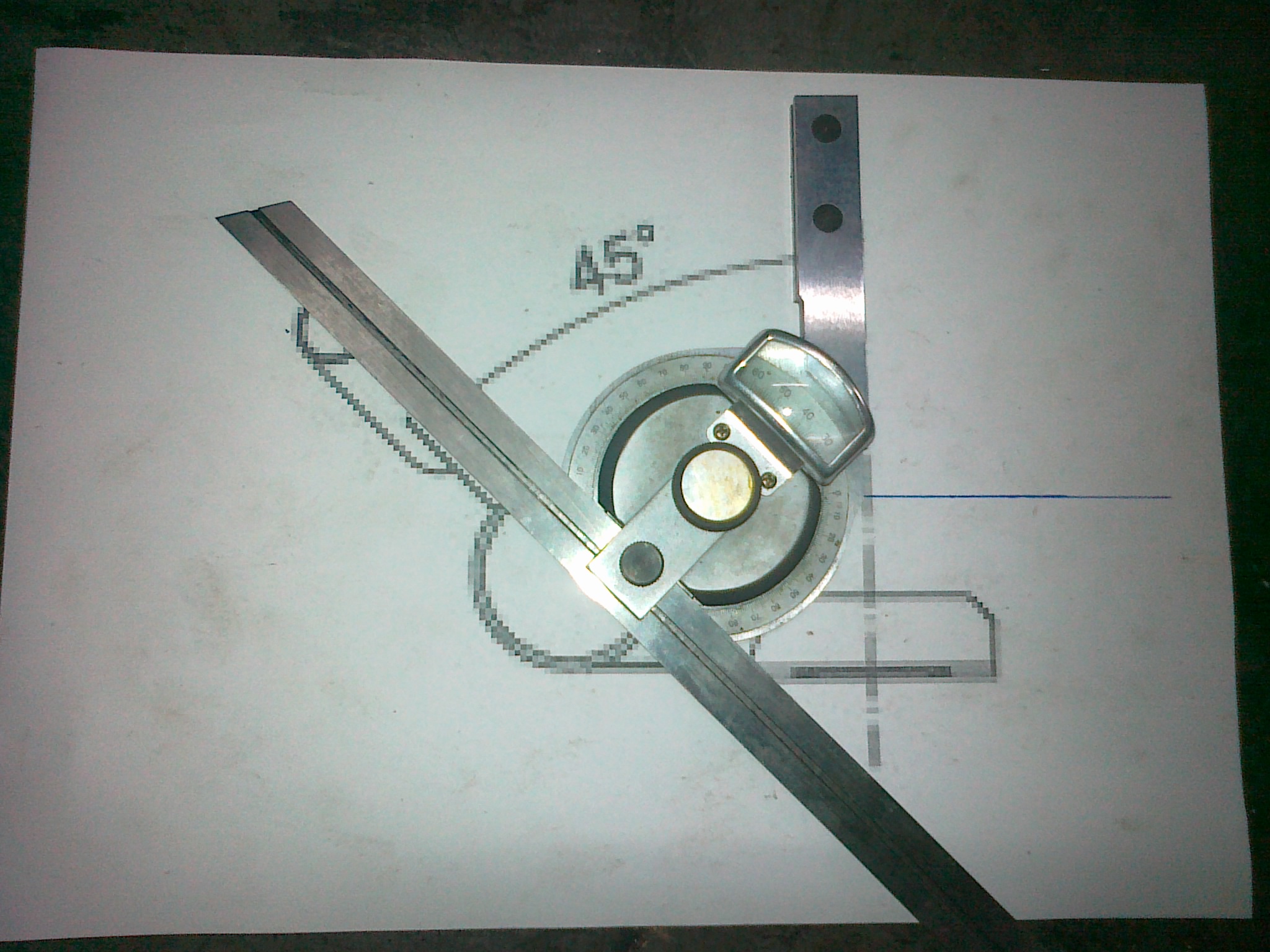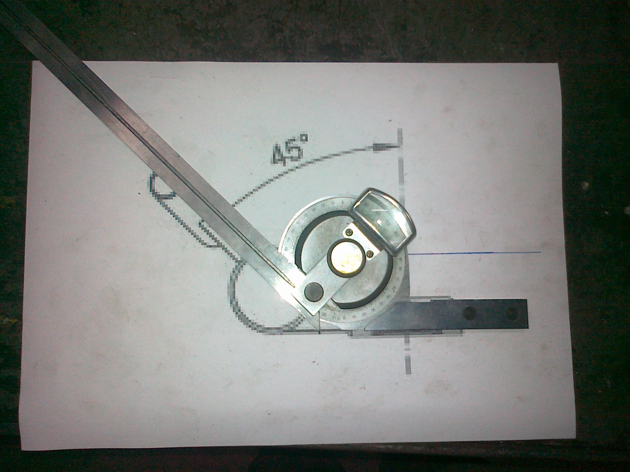 Dzisiaj zacząłem próby głowicy z ogonem zrobiłem tak prowizorycznie żeby zobaczyć jak działa, wydaje mi się że ten kąt 45 stopni a właściwie linia powinna przebiegać przez środek osi obrotu głowicy jak na foto poniżej.