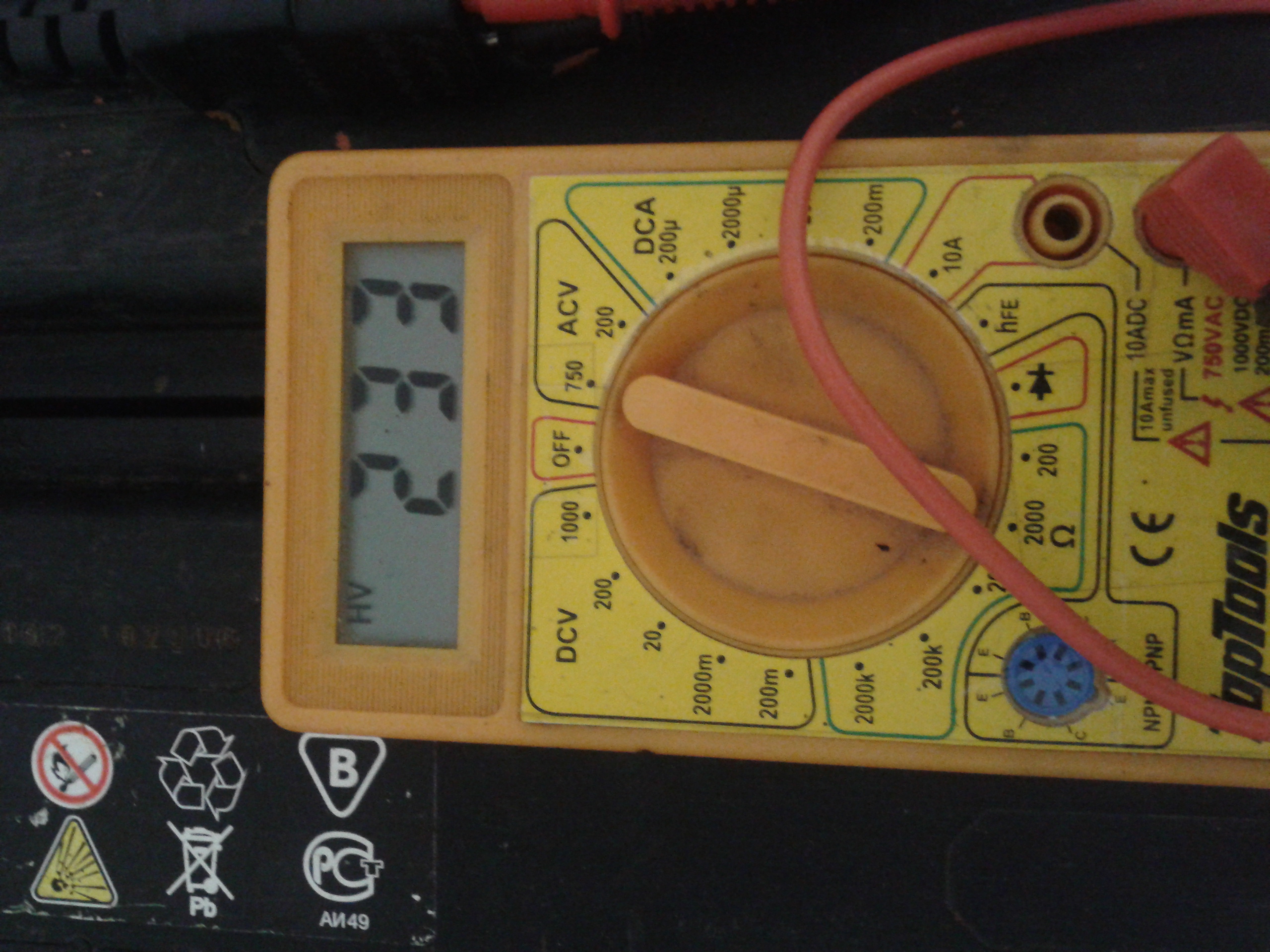 - Praca z baterii, podłączona lampka z żarówką 40W, napięcie wyjściowe 228V