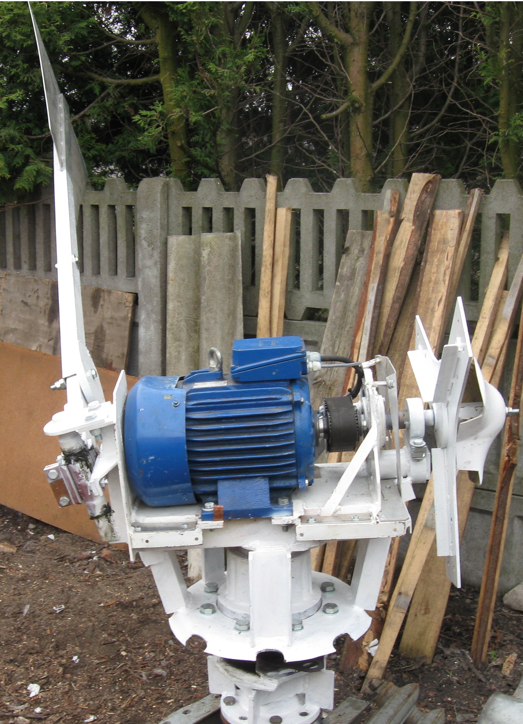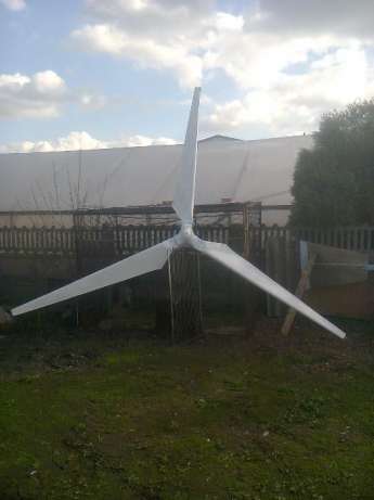 Przedstawiam koło wiatrowe które chodziło 3 miesiące na elektrowni średnica 4,4 m. Jest to trzecie koło wiatrowe, które pracowało na tej elektrowni. 1- to 3,5 m zostało sprzedane po wzmocnieniu obrotnicy. 2- to 4 m zostało zniszczone przez ptaka, który uderzył w jedno ze śmigieł. 3- to 4,4 m i ono najlepiej się sprawowało ponieważ po próbach i błędach zostało idealnie dopasowane. Z powodu kiepskich warunkach wietrznych jakie panują w okolicach Częstochowy jestem zmuszony zaniechać dalszych prób z poziomą elektrownią wiatrową :(