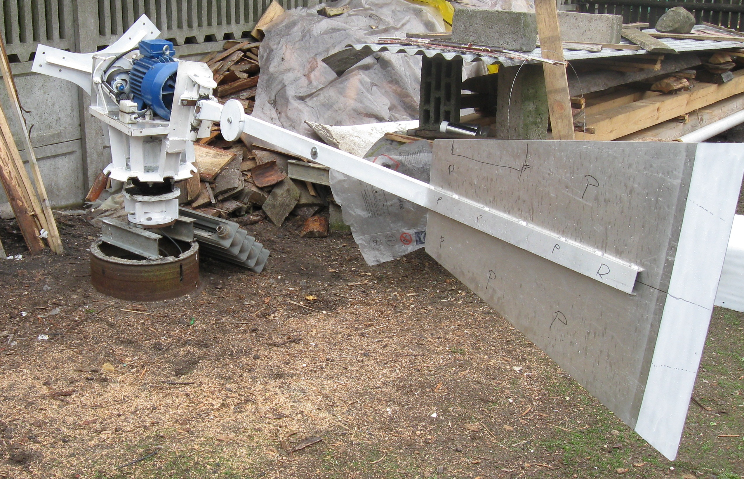 Musiałem wzmocnić obrotnicę w wiatraku. Skrzydła się rozleciały a obrotnica po gięła się. W chwili obecnej zastosowałem obrotnice wykonaną od piasty starą.