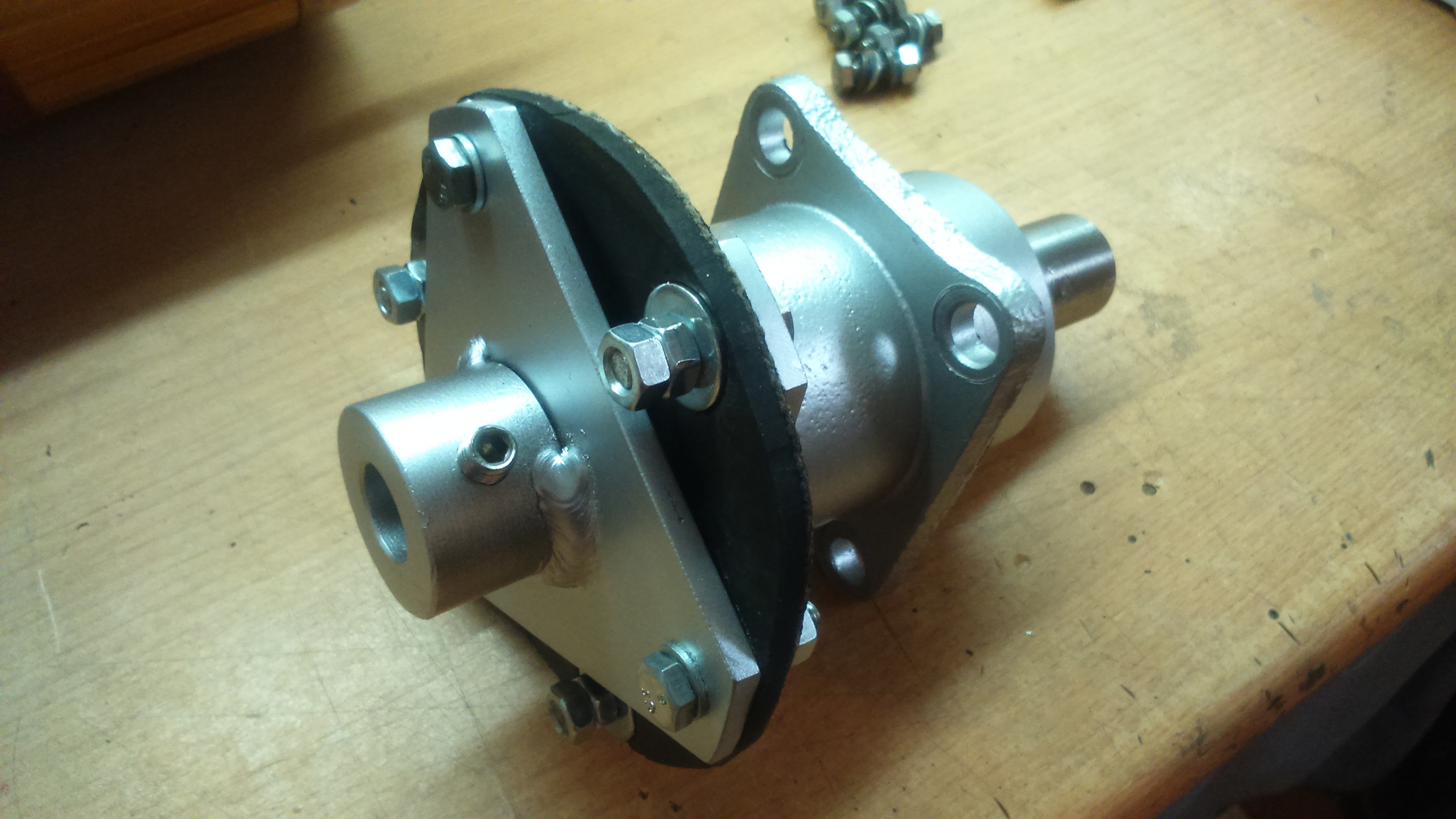 Przerobiłem także sprzęgło bo tamte wcześniejsze strasznie hałasowało(niewypał...). Teraz będzie zrobione tak że łącznikiem będzie gumowy łącznik(krążek)
