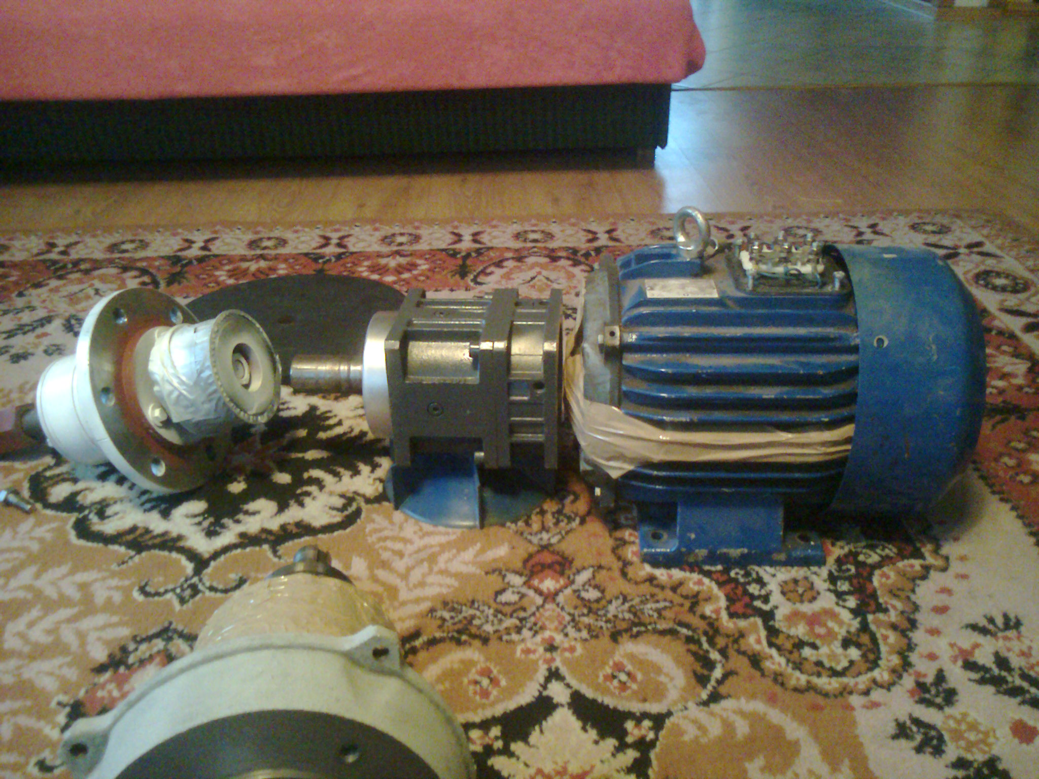 Tarcza kołnierzowa dotarła. Na zdjęciu widać rozmieszczenie: Piasta rotora, przekładnia planetarna i prądnica.