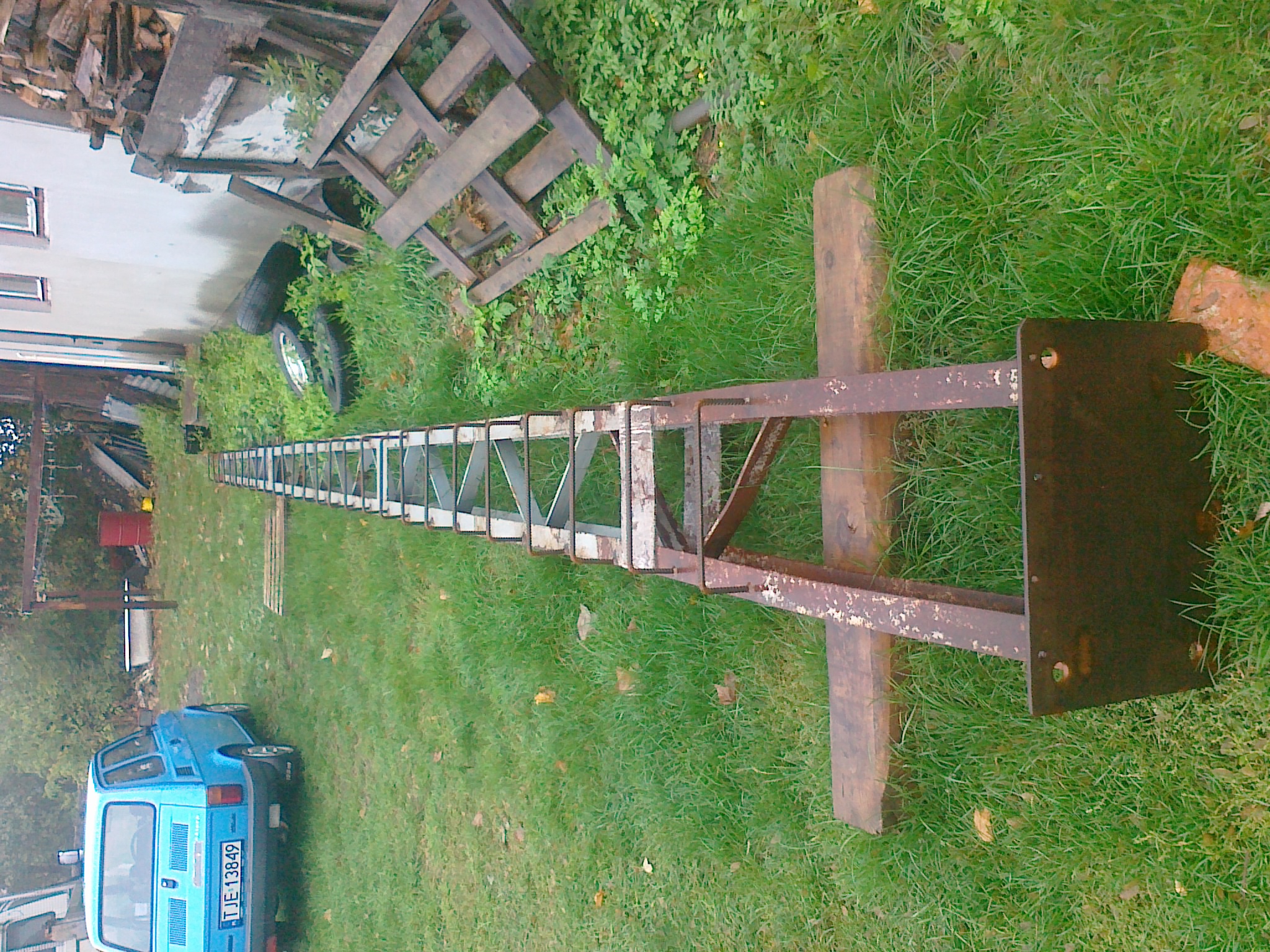 Trochę działałem w sobotę przy maszcie zrobiłem przedłużenie słupa z 9 do 14 metrów z kątownika 80x80 mocne to i ciężkie.Podstawa z zawiasem też jest gotowa, jak dobrze pójdzie to w sobotę będę robił drabinkę z drutu żebrowanego 14-stki.