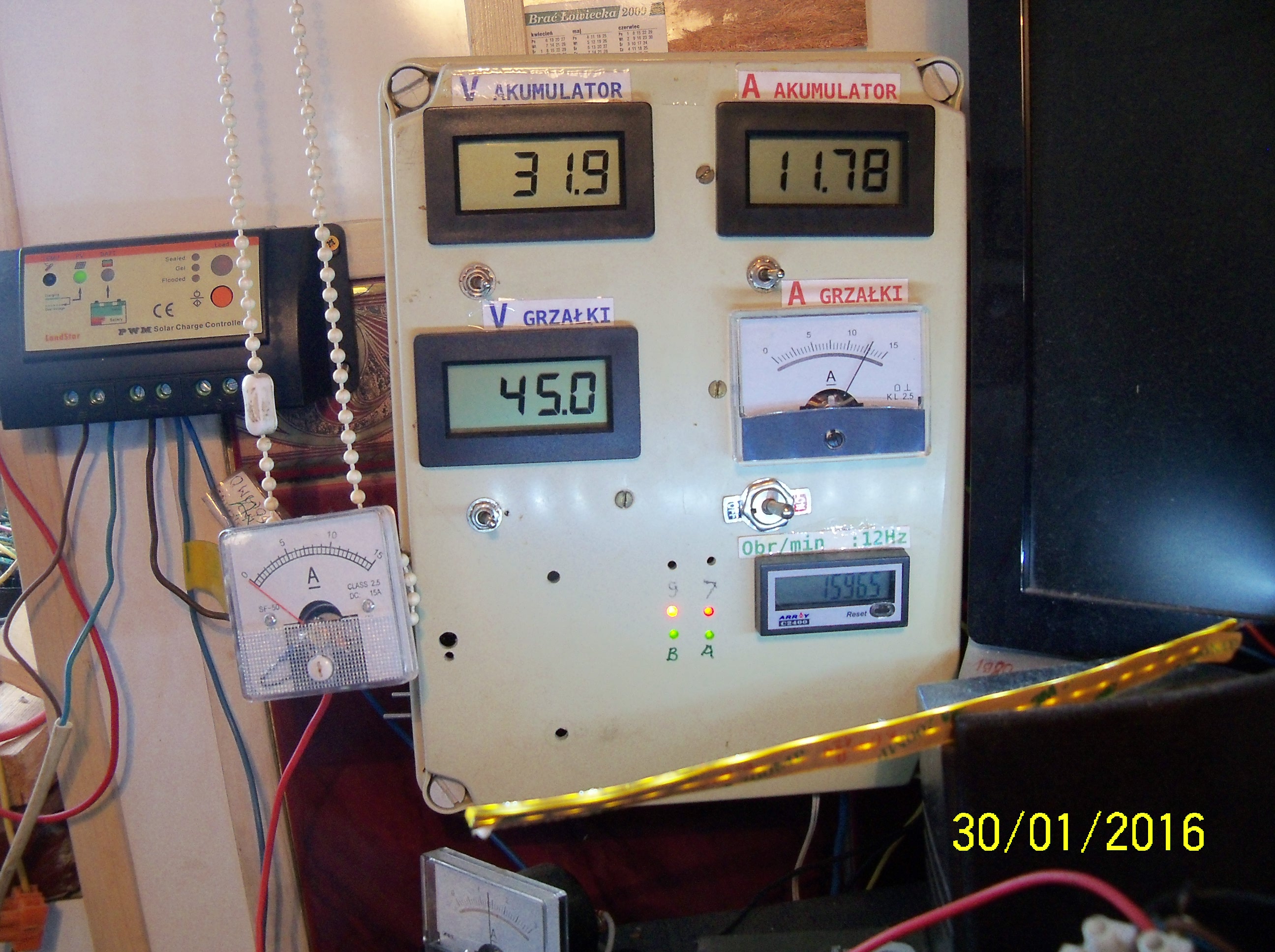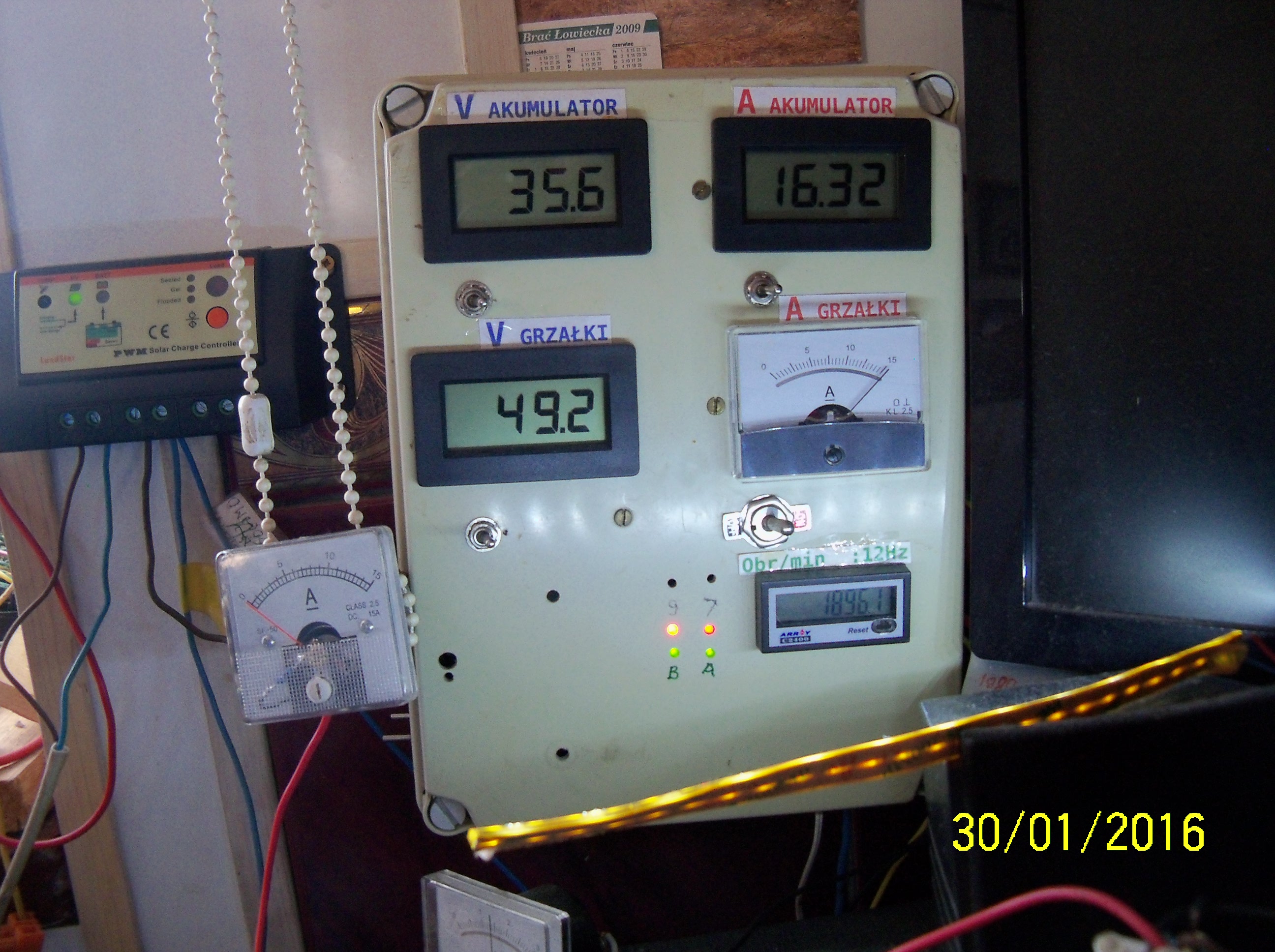 Ostatnio nieźle wiało, stąd obserwacje zestawu wiatrowego. Oto parę zdjęć z eksperymentów co musi opanować zestaw regulacyjny. Na co dzień czuwają dwa shunt regulatory i Brizo z PWM. Gdy zapowiadane są silne wiatry to dodawana jest Tiny. Wszystkie regulatory mają wymienione mosfety na 100 woltowe, bo zdarzało się że 75 V czasami nie radziły sobie z przekraczaniem napięcia i zwierały się zatrzymując wiatrak.