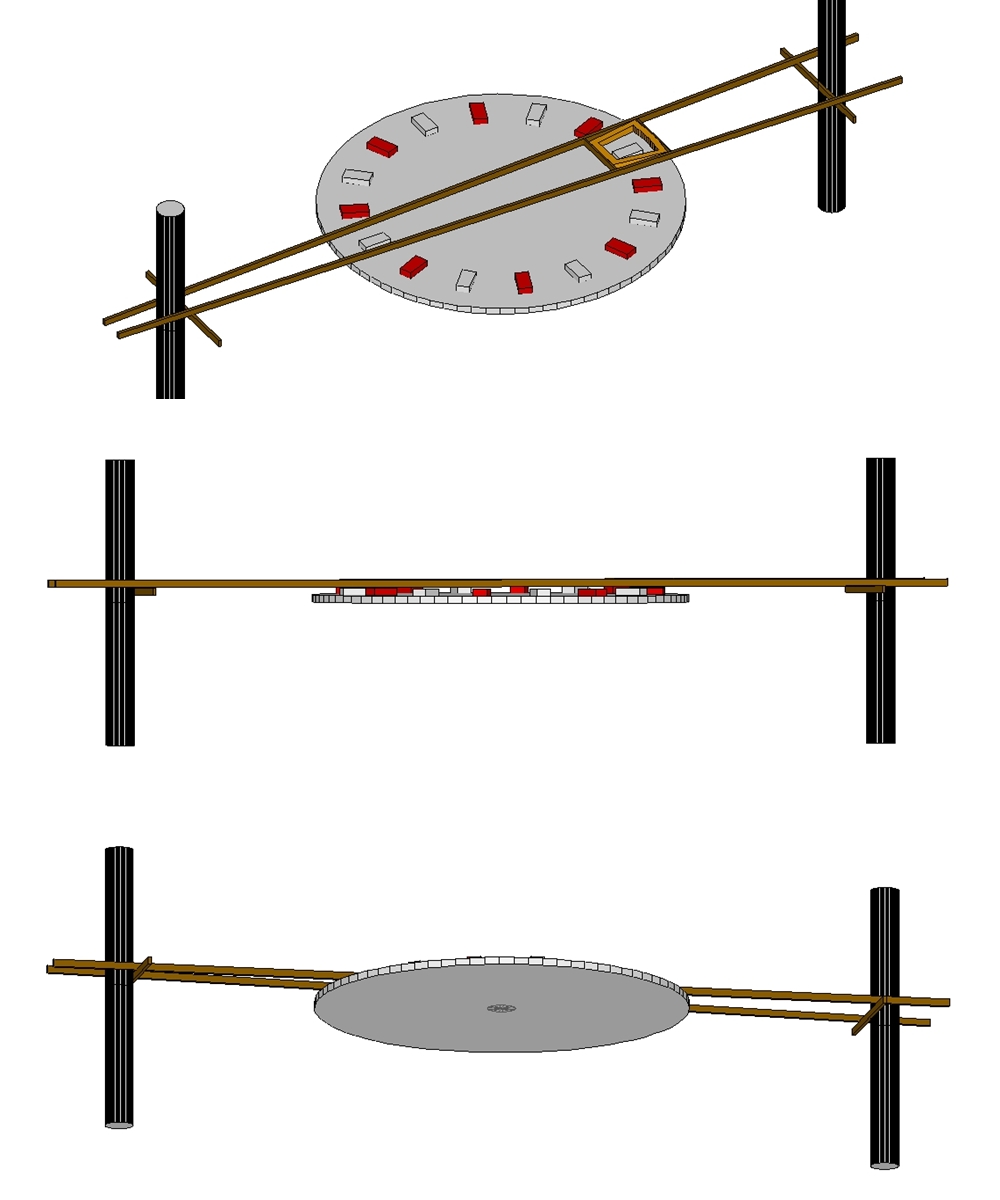 Pisałeś, że nie miałeś koncepcji. Gdybym ja miał to zrobić, po prostu obwiązał bym je taśmą razem z dwoma listewkami, szerokimi tak jak planowany stator ale dłuższymi niż rotory tak aby wystawały jakieś 20cm, z jednej i drugiej strony. Następnie dospawał bym do Twojego stelażu dwie jakby półeczki z pręta, na tyle jednak elastycznego aby można było go wyginać i regulować położenie cewki i listewek. Myślę, że wtedy obeszło by się bez zalewania
