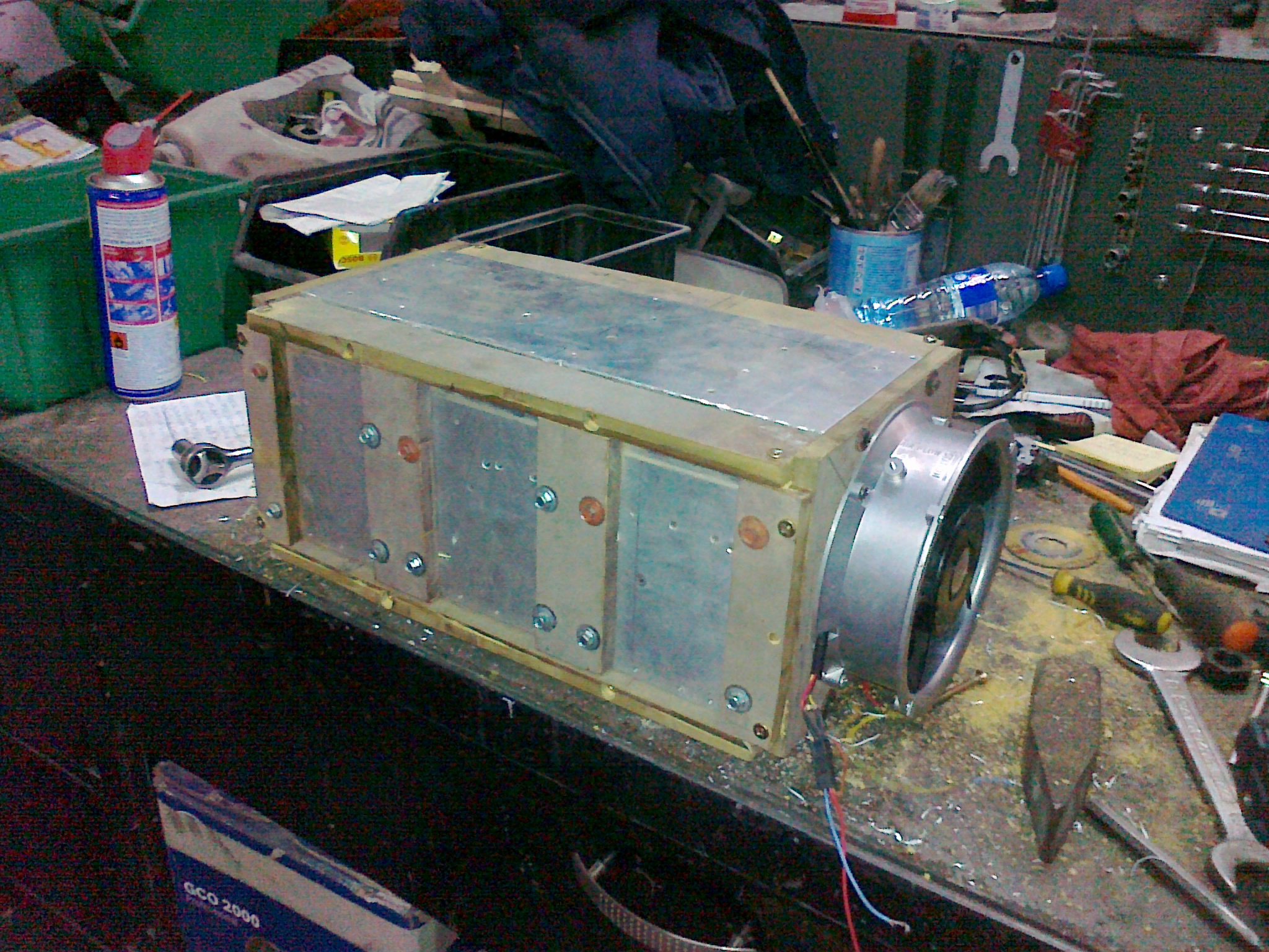 Dzisiaj miałem chwilę czasu i zrobiłem tunel do chłodzenia diód i tranzystorów. 6 radiatorów na diody i dwa duże na tranzystory
