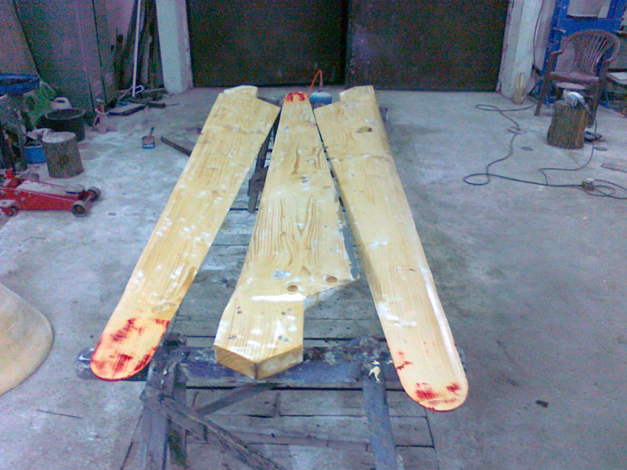 Śmigło pomalowane pokostem tak jak mówił Tomek, czekam aż wyschnie.Kołpak zaszpachlowany teraz będę obrabiał i równał.