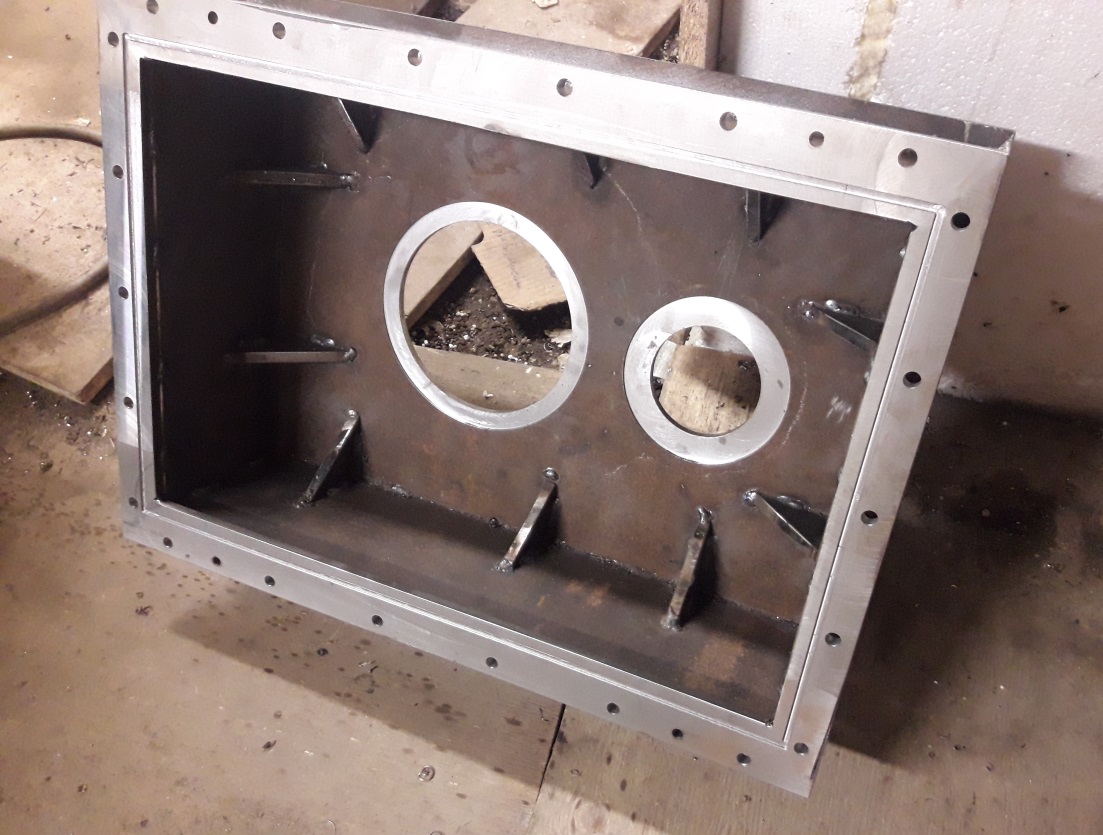Zostało jeszcze zamocowanie gniazd łożysk ,uszczelnienie, zamocowanie łap montażowych i uszu do dźwigania.. POwiercenie korków spustowych i przelewowych oleju..