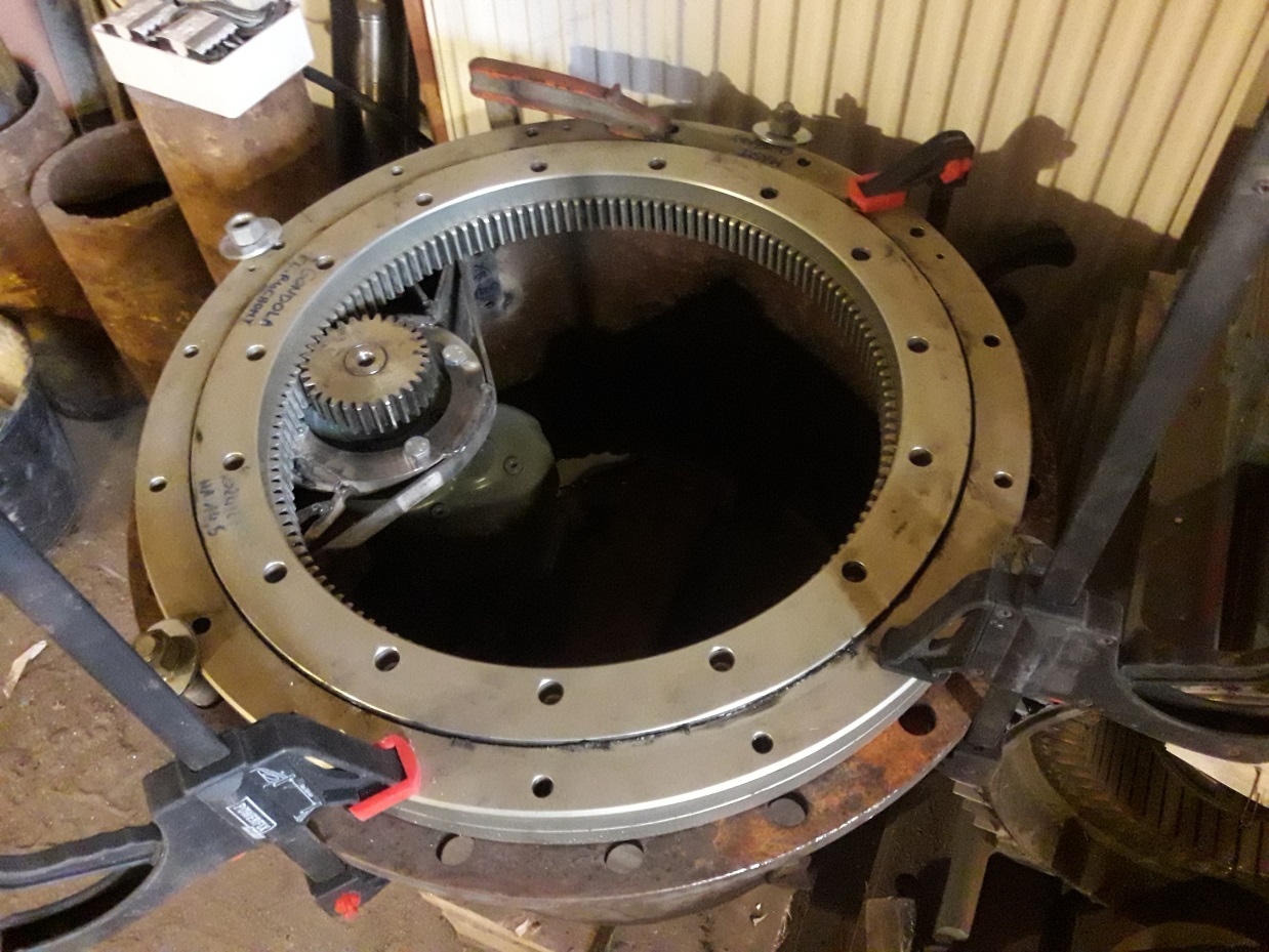 Prowizorycznie przymocowałem do niego mój wieniec obrotu oraz motoreduktor.