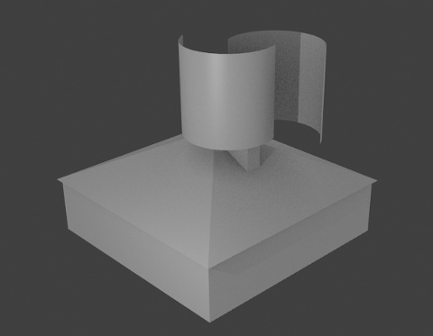 Maszt (rura grubościenna, w niej cieńsza, a w tym jeszcze pręt) wpuszczony w komin wentylacyjny (wbetonowany, wkręcony i jeszcze zakotwiczony stalową linką w środku), prądnica jeszcze nie wiem jaka, 3 łopaty.