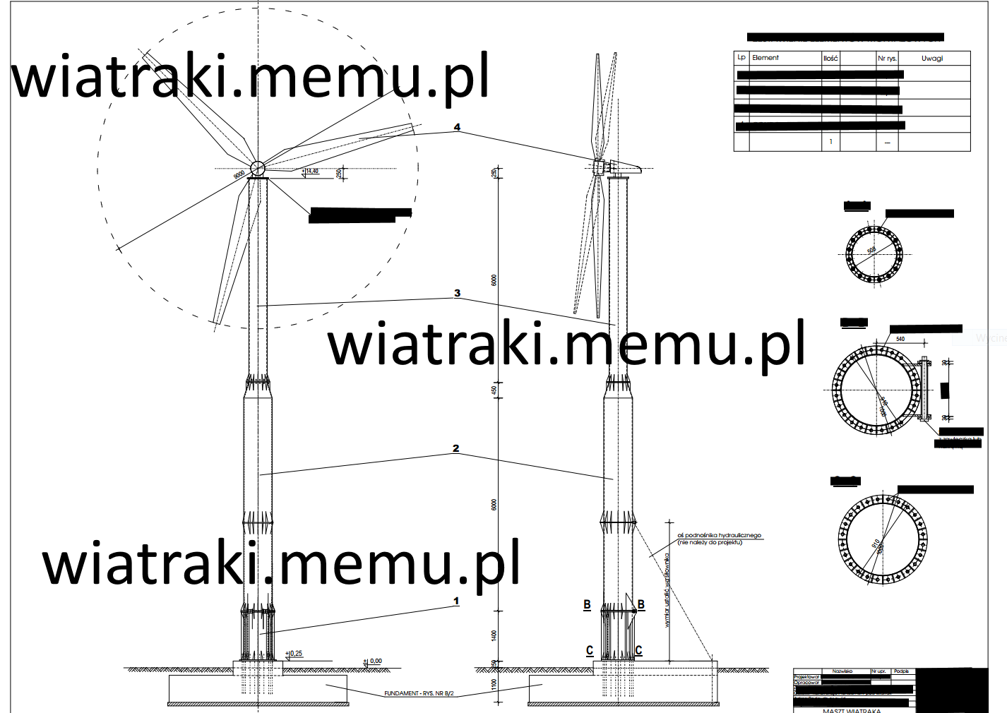 osi obrotu (masztu,wieży): l =10.000 [m]