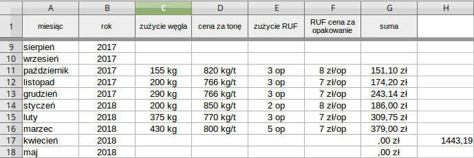 Edit: Koszt ogrzewania, sezon grzewczy 2017-2018.