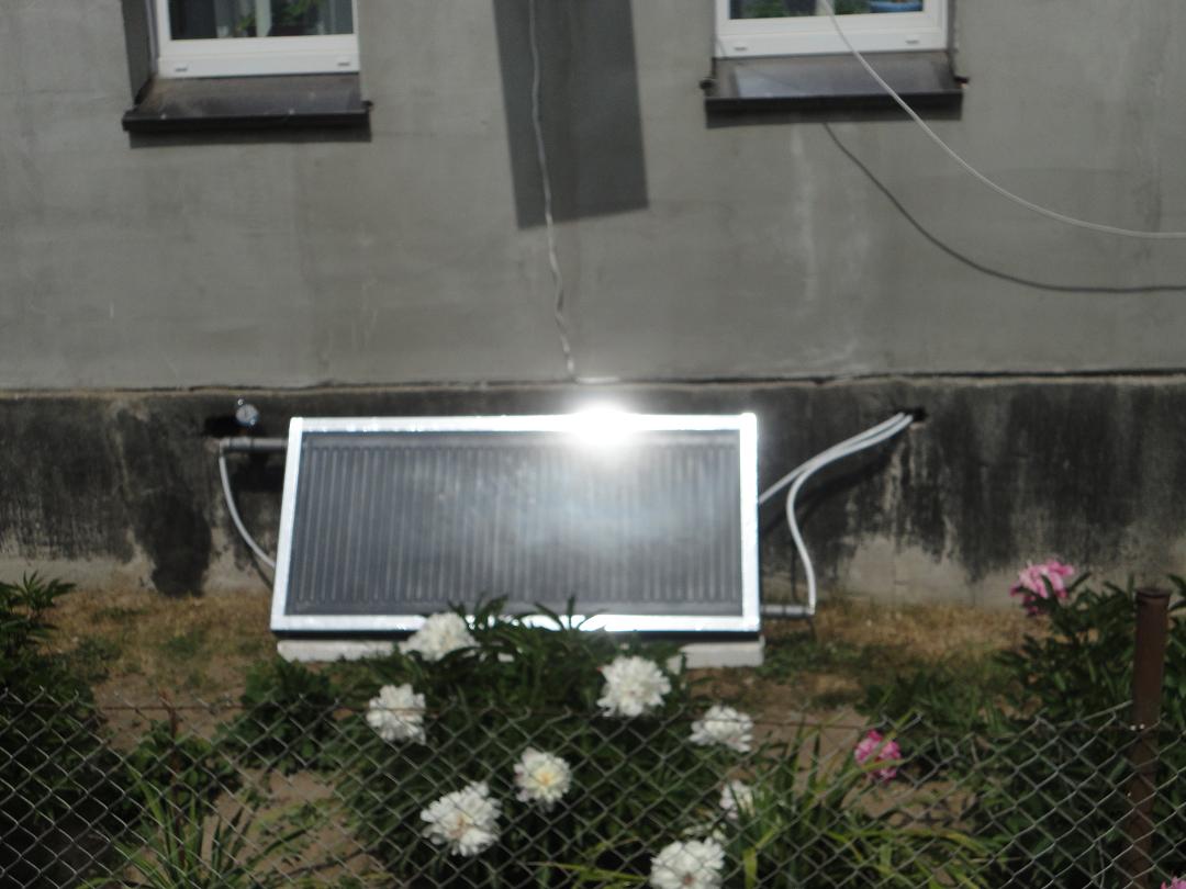 dzięki za uwagi, zawsze się przydają a więc kolektory już pod odpowiednim kątem lecz muszę jutro podnieść je trochę do góry kwiaty przeszkadzają:-) woda nie jest bieżąca krąży między kolektorami a bojlerem w wężownicy więc grzejniki pracują zwyczajnie jak w c.o i cała instalacja jest wpięta do c.o (wykorzystane istniejące naczynie wzbiorcze) więc ciężko z tym kretem będzie powalczyć nie mam pojęcia ile litrów wody ma cała instalacja w domu :oops: , cały czas zbieram się aby zrobić 3ci bo te 2 troszkę za małe no i nad konstrukcją nośną trzeba pomyśleć ogólnie wszystko było zrobione z ciekawości działania a słoneczko w mojej okolicy w tym roku to porażka praktycznie go nie ma wiecznie chmury i deszcze nie pamiętam takiego lata dobrze, że chociaż dla baterii słonecznych go wystarcza aby naładować aku za dnia :-) jutro postaram się wrzucić fotki jak to wszystko ustawie wyżej.