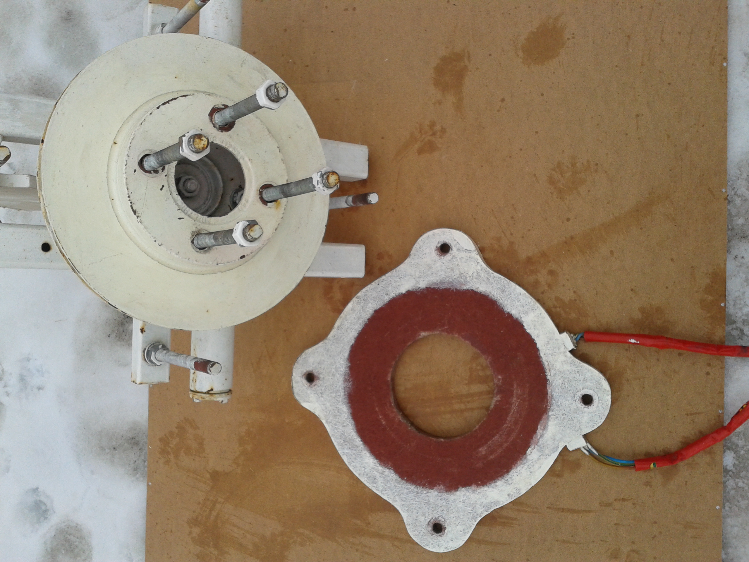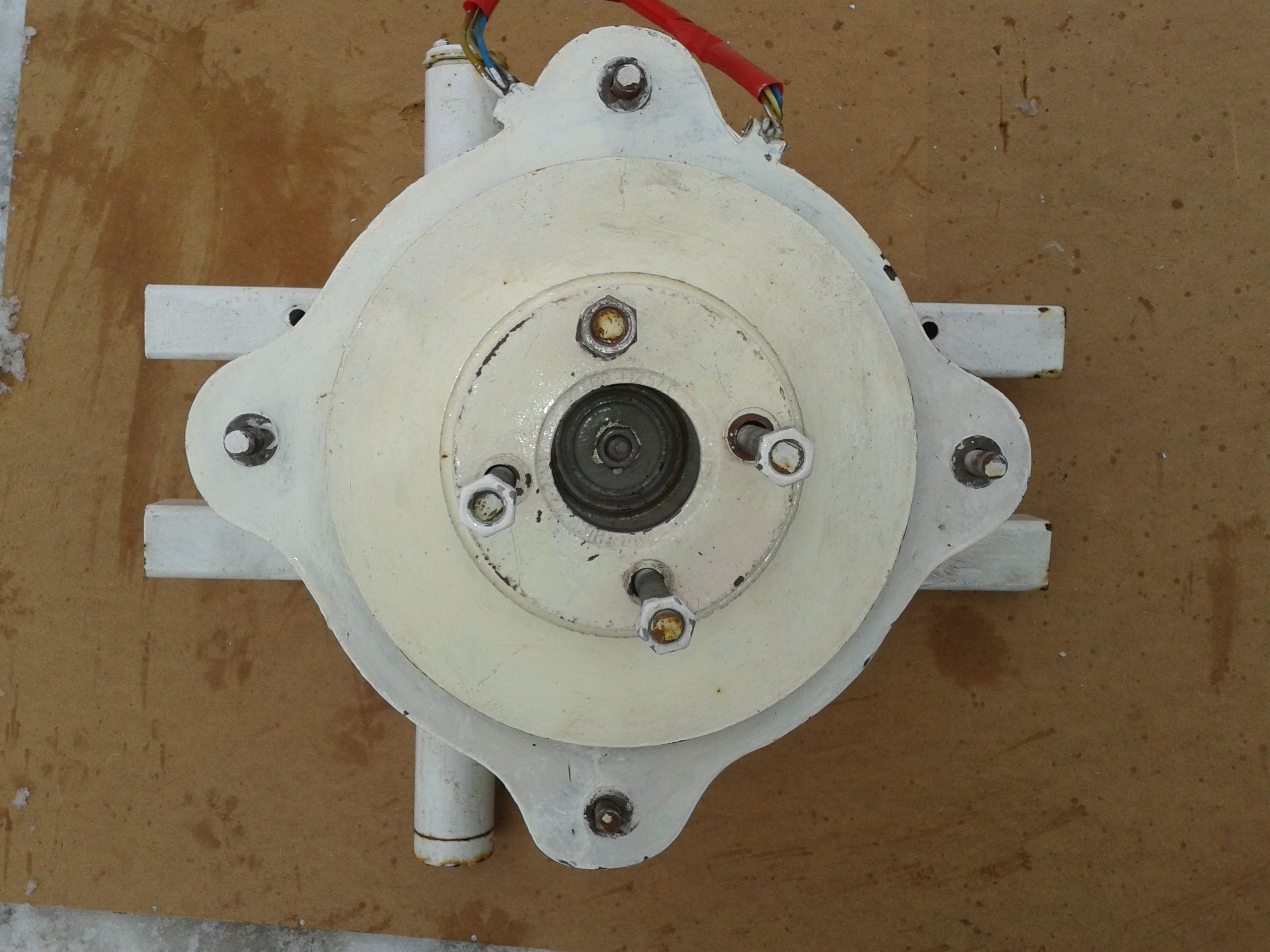 Mam do sprzedania niedokończoną prądnicę 3 fazową typu amerykanka o mocy 500W. Doskonale nadaje się do ładowania akumulatorów 12v. W skład prądnicy wchodzi stator w którym znajduje się 9 cewek nawiniętych drutem 2x 1mm w ilości 50 wojów na cewkę, wysokość cewek 70 mm, szerokość u góry 60 mm, na dole 50mm,wysokość boku cewki 40mm, szerokość 15mm, grubość 18mm, zalanych żywicą epoksydową wzmocnione włóknem, z statora wyprowadzone są 3 przewody faz 1,2 i 3 oraz 3 przewody do łączenia w gwiazdę lub trójkąt, dwie tarcze(są tarcze hamulcowe od forda mondeo z toczone na tokarni )gotowe do naklejenia magnesów. Gondola wykonana solidnie z stalowego kształtownika grubości 3 mm. Rotor zamocowany na piaście zapożyczonej z forda z nowym dwu częściowym łożyskiem wciskanym na prasie, szpilki mocujące rotor i stator 12mm. Do całego zestawu wystarczy nakleić na tarcze 24 szt magnesów N38 lub N42 40x18x10 i cieszyć się własnym prądem. Cena do uzgodnienia. Kontakt przez PW. Załączam zdjęcia.