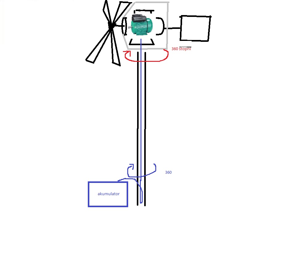 . Nurtuje mnie sposób rozwiązania skręcającego się przewodu w wiatraku o poziomej osi obrotu. Przecież przy zmianie kierunku wiatru cała oś pozioma może się obracać o 360 stopni na maszcie. Na dole przewody podłączone są do akumulatorów. Może to śmieszne, ale nie mogę sobie wyobrazić rozwiązania tego problemu. Proszę o jak najprostsze wyjaśnienie. Można ręcznie